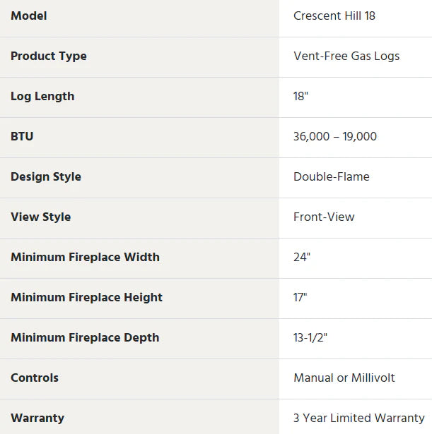 This Series offer value and performance along with hand-painted logs for a more realistic look. Millivolt (Remote Ready) or manual control. All models are dual-listed for vent-free and vented applications. See installation manual for detailed instructions.
