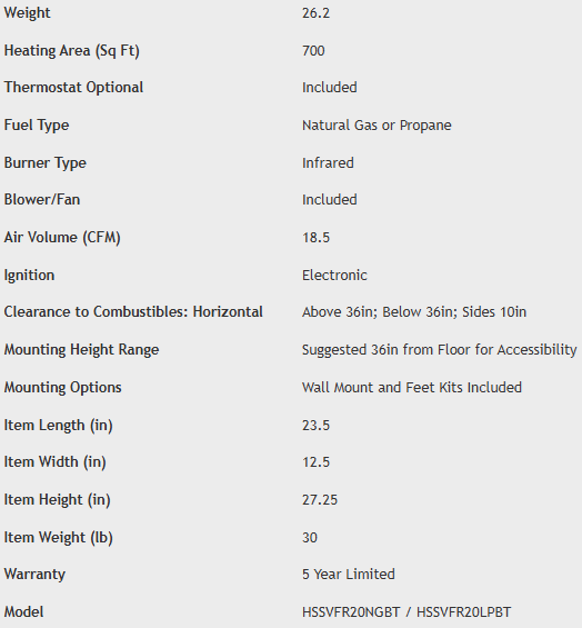 This Propane Gas Radiant 18,000 BTU vent-free heaters are the perfect supplemental heating solution even on the coldest days. This heater is conveniently equipped with a thermostat for superior control of the temperature in your space. Also, with a battery-powered electronic ignition, starting it is a breeze—battery included. This unit can be permanently mounted to the wall or securely fastened to the floor with included mounting brackets and fasteners. Multiple burner tiles utilize radiant heat, warming your space with the power of the sun. With a factory-standard Oxygen Depletion Sensor (ODS), rest assured, this heater will provide you with years of comfortable and safe heat.
