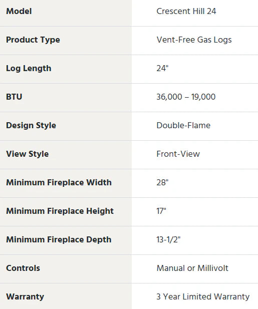 This Series offer value and performance along with hand-painted logs for a more realistic look. Millivolt (Remote Ready) or manual control. All models are dual-listed for vent-free and vented applications. See installation manual for detailed instructions.