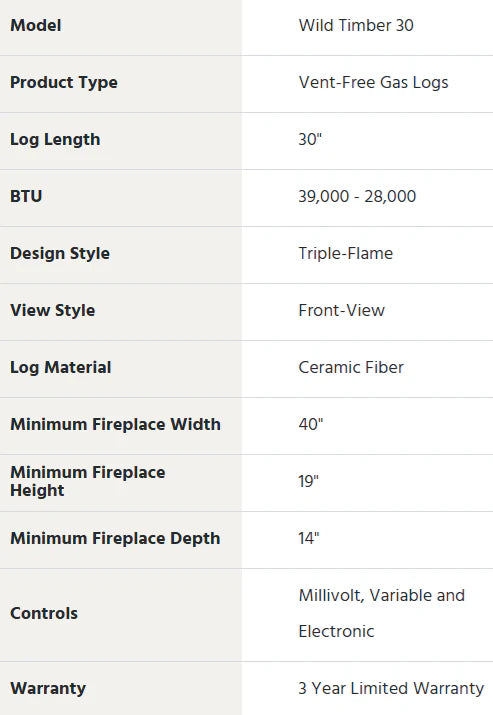 The Tri-Flame Series features a unique triple burner and glowing ember bed at its base to achieve the look of a real wood fire. Flickering embers are achieved through the use of two unique technologies and the burner offers the distinctive feature of an additional row of flames behind the logs. The result is a striking appearance with a very deep flame pattern. All models are heater rated with 99% heat efficiency and include a wood-burning grate appearance.