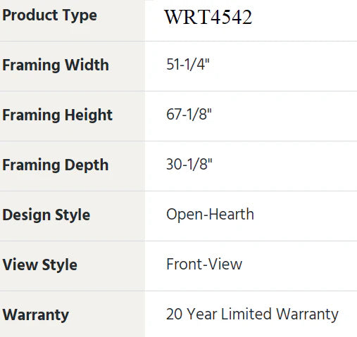 42" Wood Burning Custom Fireplace with 30" Tall Opening WRT4542 by Superior