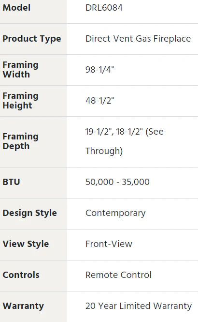 Linear Contemporary Direct Vent Complete 84" Gas Fireplace with Floor Lighting Blower Fan Multi Function Remote Options to See Thru DRL6084 DRL6000 F4396