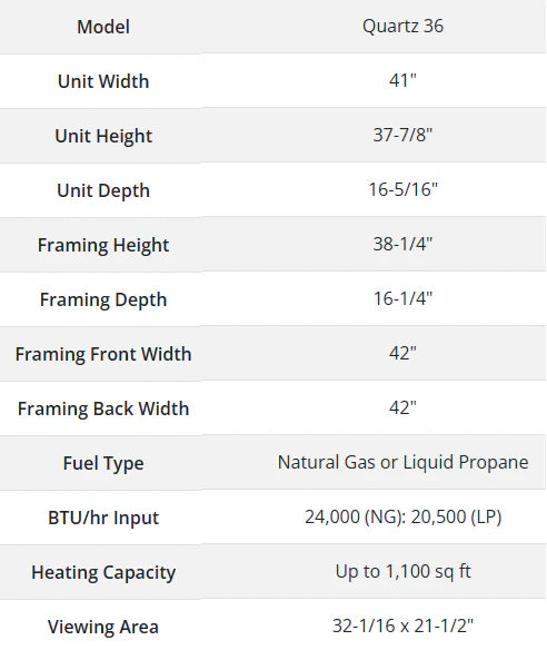 ajestic Quartz 36" Direct Vent Gas Log Fireplace with Option to Change to Contemporary Glass QUARTZ36