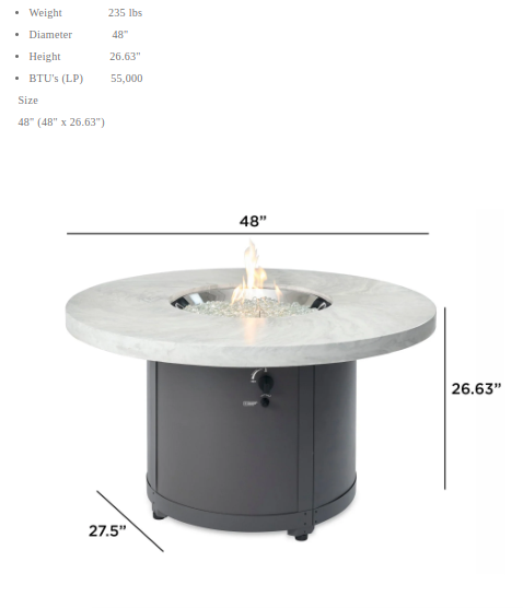 The Beacon Gas Fire Pit Table is a modern take on a classic style. The unique Supercast™ concrete top sits upon the durable, powder-coated steel base. Chat height naturally invites guests to the sit around the fire and relax. The stunning 20” Crystal Fire® Plus burner is UL listed for safety.
