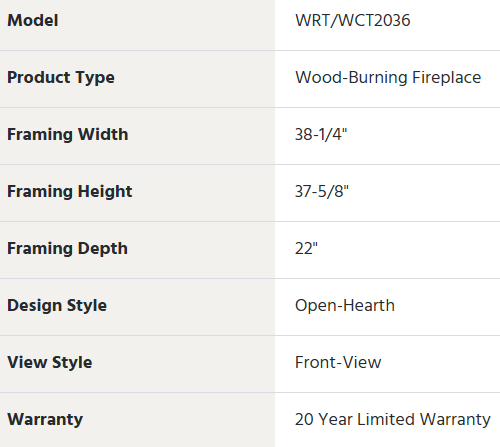 Though surprisingly economical, the WRT/WCT2000 fireplaces present a “big box” look with an oversized brick to brick opening. Available in clean-face and circulating models, the fireplace comes standard with textured, powder coat finish and full smooth stacked refractory brick liner. 8″ pipe makes for easy installation.