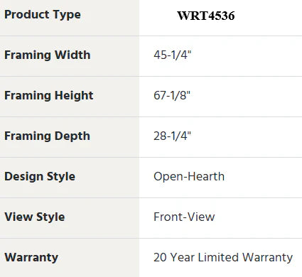 Designed for large, custom applications, the WRT4500 fireplaces feature a 30" tall opening and full brick-to-face design with no visible interior sheet metal with refractory extending to the front edge. Standard barometric dampers are factory-installed on both sides, allowing for two AK 4 fresh air kits, which are recommended for maximum performance. Standard models include your choice of traditional, stacked or herringbone textured brick panels. 12" venting required.
